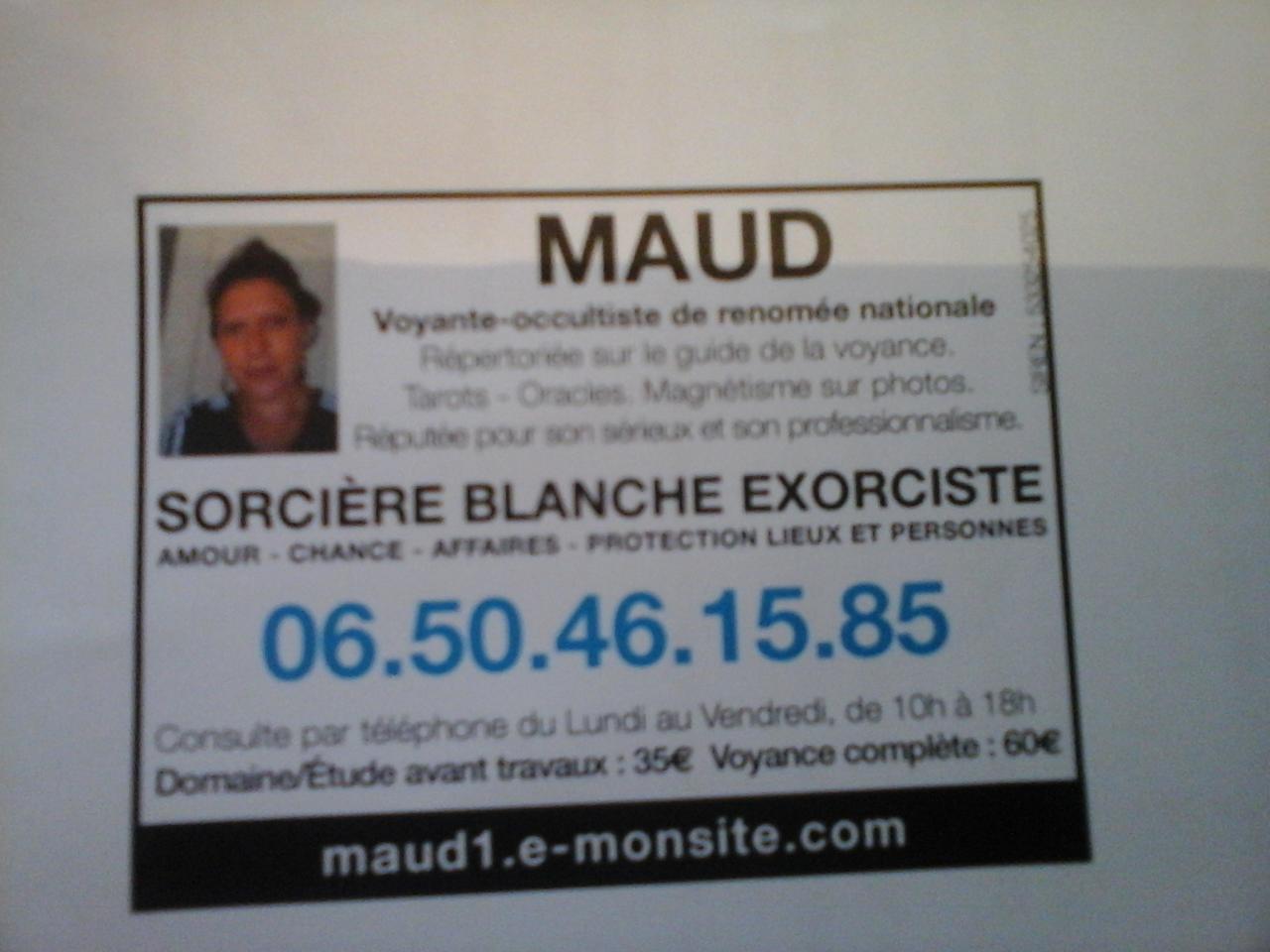 Mes dons réels confirmés et accrédités:voyante cartomancienne; magnetiseuse; sorcière blanche dont:exorcisme, purification de lieux et de personnes; guérison (sauf stade maladie très avancé:complément de votre traitement médical); rapprochement affectif/retour entre deux êtres si amour réciproque uniquement. Les délais sont variables pour un retour, on ne peut dater avec exactitude en voyance. Je mets tout mon savoir en pratique mais ne peut garantir un résultat avec certitude=déontologie+l' occulte et l'ésotérisme ne sont pas des sciences exactes.